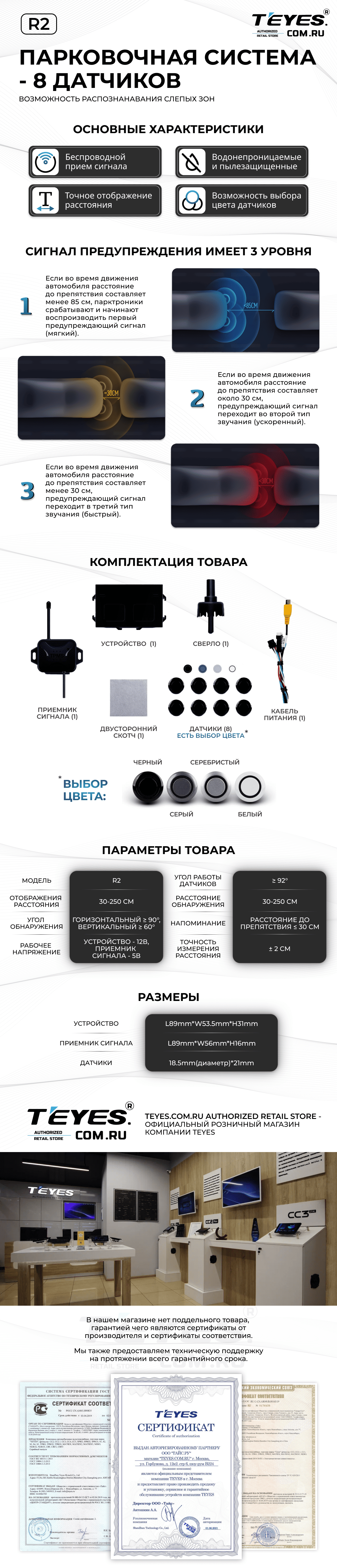 Передние и задние парктроники Teyes R2 для CC4 Pro / CC4 / CC4L / CC3 2K / CC3 / CC3L / CC2 Plus / SPRO Plus / TPRO2 / LUX ONE (Черные) 8-датчиков - купить всего за 21 900 руб. в интернет-магазине в Орске Teyes.com.ru. ✓ Самый лучший выбор мультимедиа ✓ Лучшая замена штатному ГУ ✓ Тел. +7 (800) 775-31-74