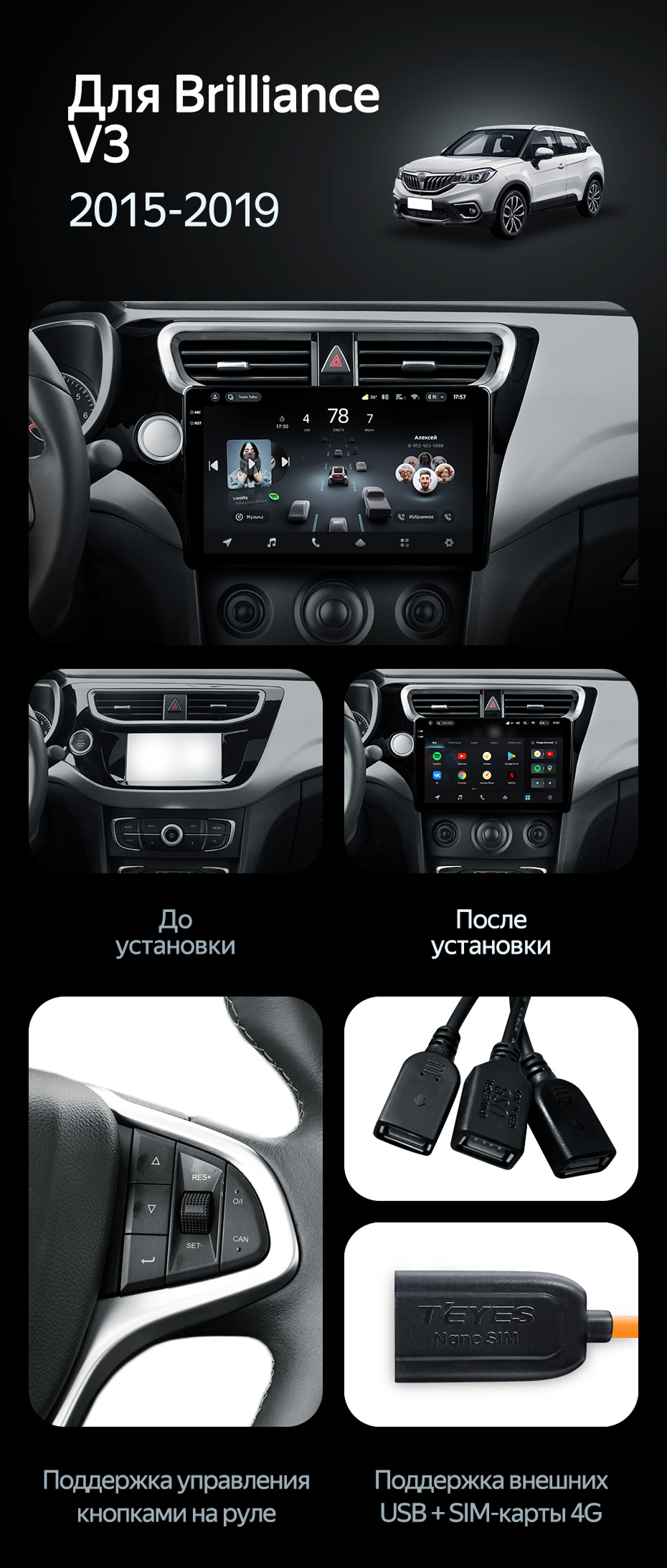 Переходная рамка Brilliance V3 (2015-2019) (10") - купить всего за 3 000 руб. в интернет-магазине в Орске Teyes.com.ru. ✓ Самый лучший выбор мультимедиа ✓ Лучшая замена штатному ГУ ✓ Тел. +7 (800) 775-31-74