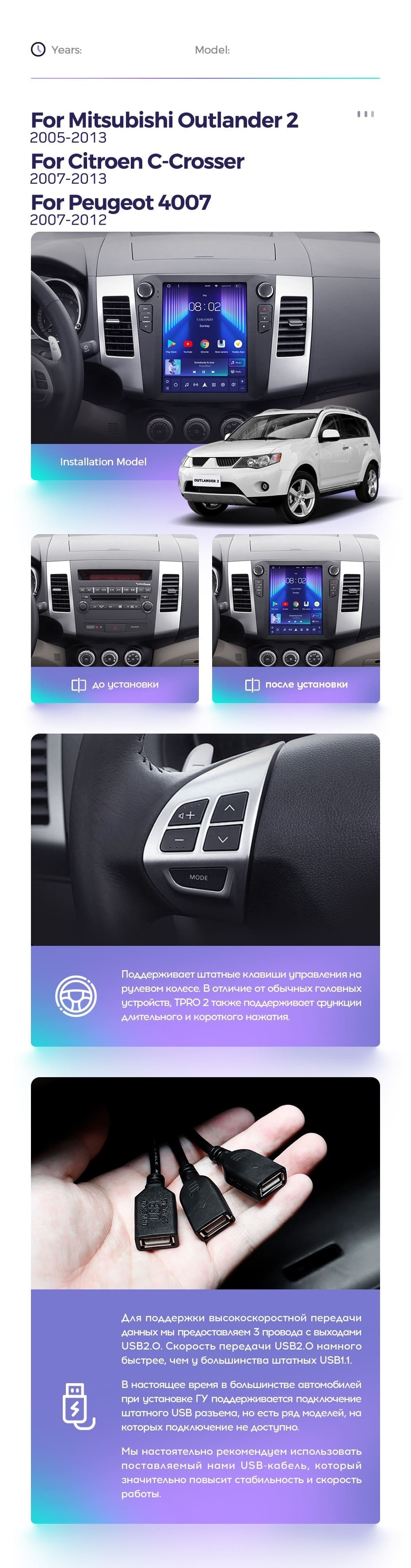 Штатная магнитола Tesla style Teyes TPRO 2 4/64 Peugeot 4007 (2007-2012) Тип-A - купить всего за 37 000 руб. в интернет-магазине в Орске Teyes.com.ru. ✓ Самый лучший выбор мультимедиа ✓ Лучшая замена штатному ГУ ✓ Тел. +7 (800) 775-31-74