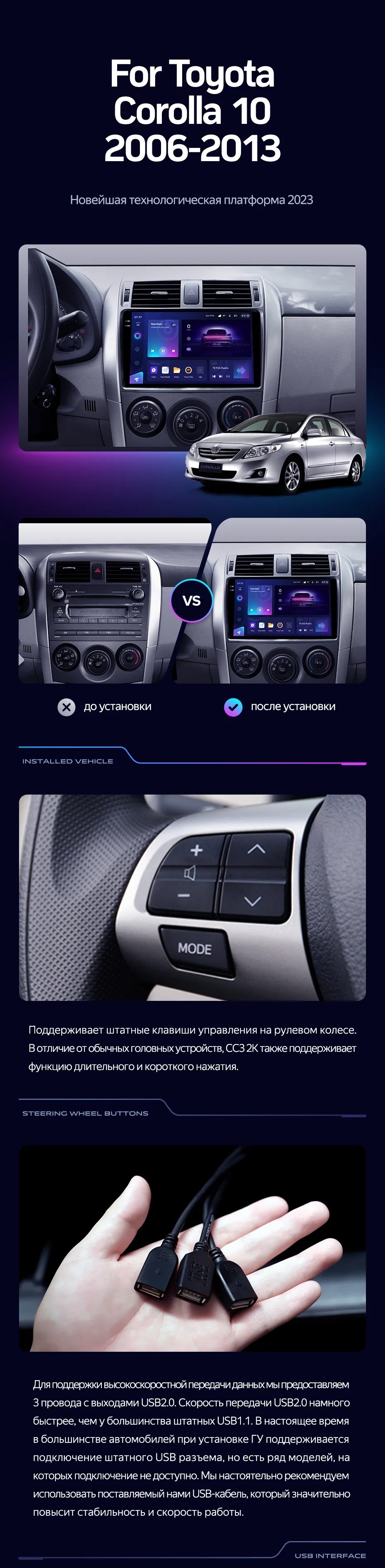 Штатная магнитола Teyes CC3 2K 4/32 Toyota Corolla 10 E140 E150 (2006-2013) Тип-A - купить всего за 38 860 руб. в интернет-магазине в Орске Teyes.com.ru. ✓ Самый лучший выбор мультимедиа ✓ Лучшая замена штатному ГУ ✓ Тел. +7 (800) 775-31-74