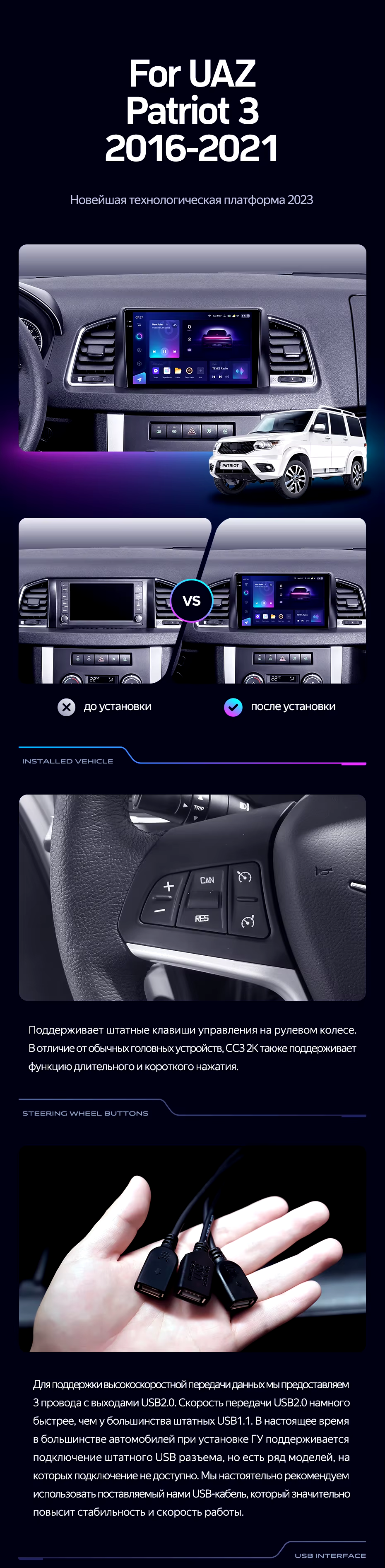 Штатная магнитола Teyes CC3 2K 4/64 UAZ Patriot 3 (2016-2021) F1 - купить всего за 44 100 руб. в интернет-магазине в Орске Teyes.com.ru. ✓ Самый лучший выбор мультимедиа ✓ Лучшая замена штатному ГУ ✓ Тел. +7 (800) 775-31-74