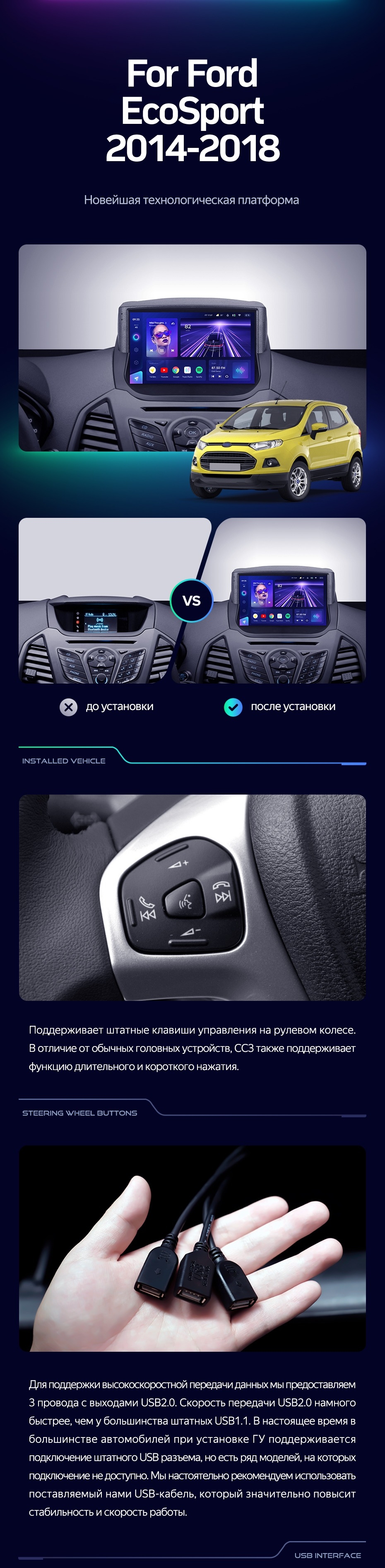 Штатная магнитола Teyes CC3 4/32 Ford EcoSport (2014-2018) F1 - купить всего за 33 530 руб. в интернет-магазине в Орске Teyes.com.ru. ✓ Самый лучший выбор мультимедиа ✓ Лучшая замена штатному ГУ ✓ Тел. +7 (800) 775-31-74