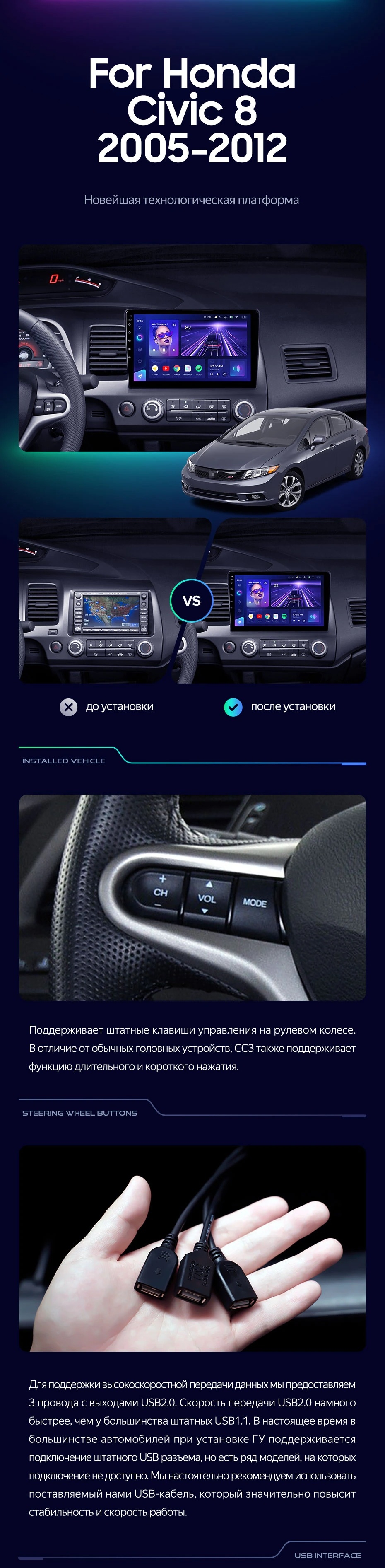 Штатная магнитола Teyes CC3 4/32 Honda Civic Hatchback (2006-2012) - купить всего за 35 970 руб. в интернет-магазине в Орске Teyes.com.ru. ✓ Самый лучший выбор мультимедиа ✓ Лучшая замена штатному ГУ ✓ Тел. +7 (800) 775-31-74