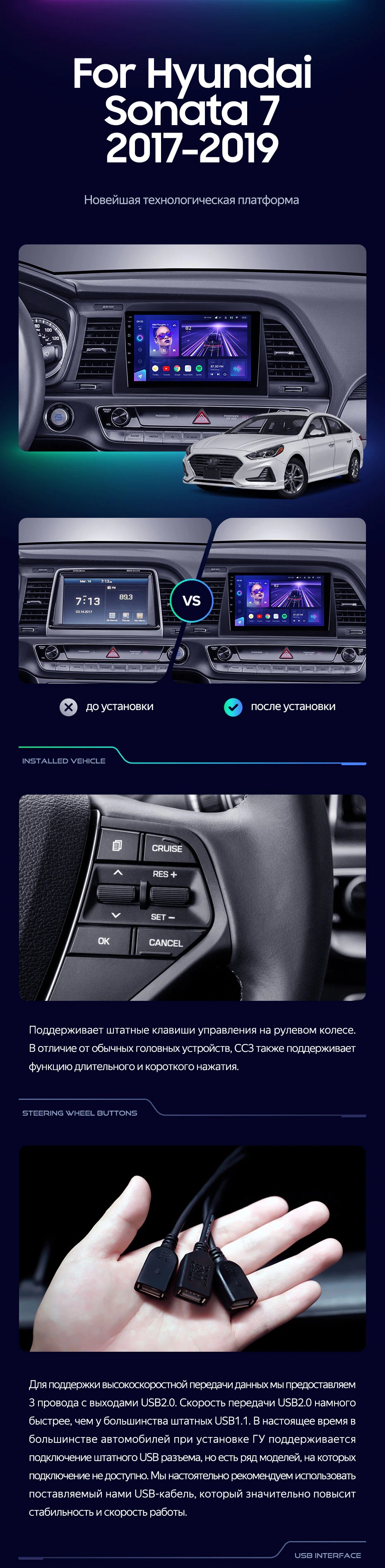 Штатная магнитола Teyes CC3 4/32 Hyundai Sonata 7 LF (2017-2019) - купить всего за 33 650 руб. в интернет-магазине в Орске Teyes.com.ru. ✓ Самый лучший выбор мультимедиа ✓ Лучшая замена штатному ГУ ✓ Тел. +7 (800) 775-31-74