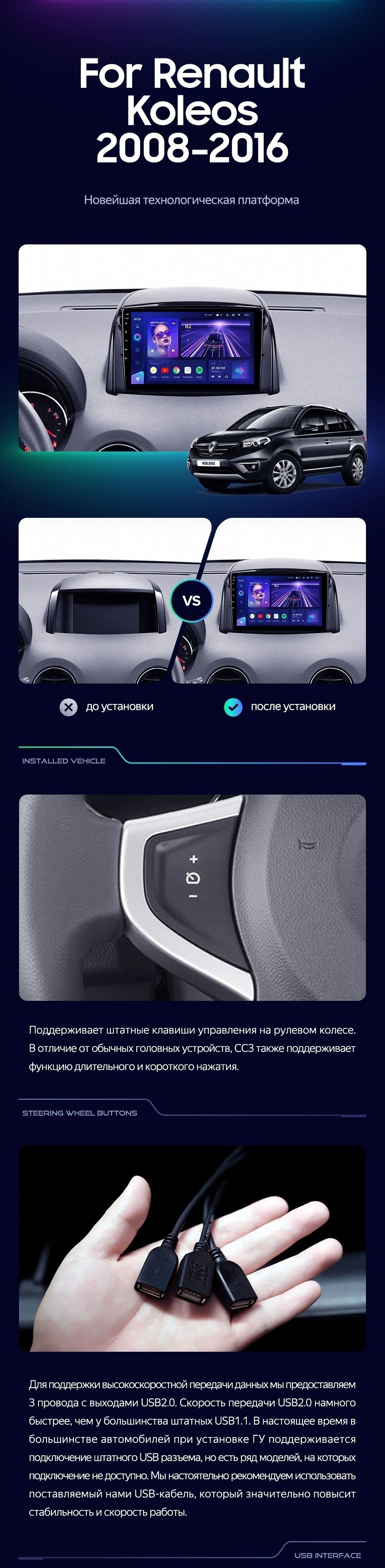 Штатная магнитола Teyes CC3 4/32 Renault Koleos (2008-2016) Тип-A - купить всего за 36 030 руб. в интернет-магазине в Орске Teyes.com.ru. ✓ Самый лучший выбор мультимедиа ✓ Лучшая замена штатному ГУ ✓ Тел. +7 (800) 775-31-74