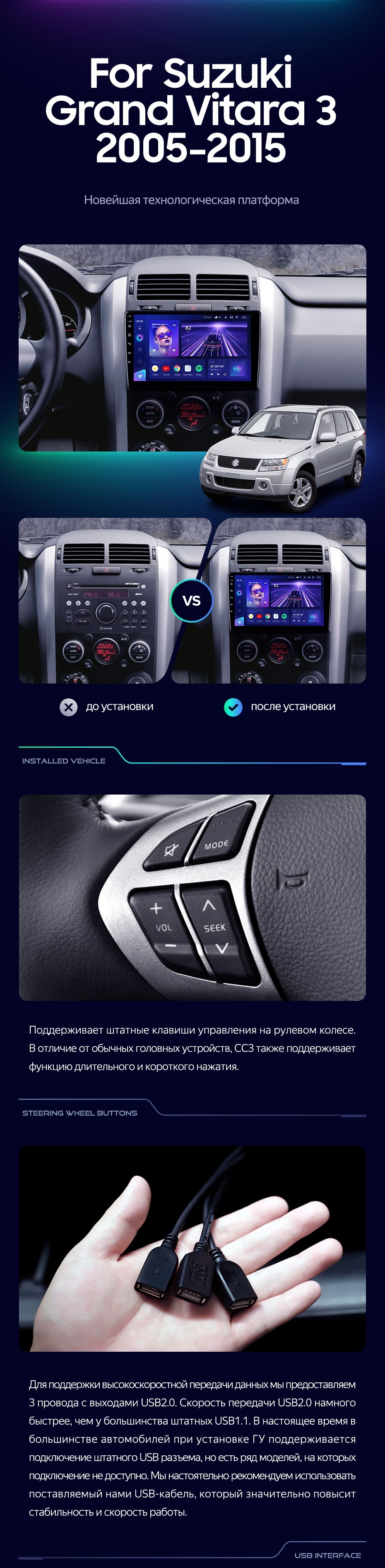 Штатная магнитола Teyes CC3 4/32 Suzuki Grand Vitara 3 (2005-2015) - купить всего за 31 930 руб. в интернет-магазине в Орске Teyes.com.ru. ✓ Самый лучший выбор мультимедиа ✓ Лучшая замена штатному ГУ ✓ Тел. +7 (800) 775-31-74