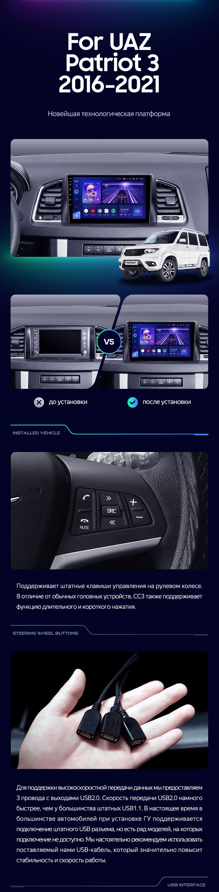 Штатная магнитола Teyes CC3 6/128 UAZ Patriot 3 (2016-2021) F1 - купить всего за 45 400 руб. в интернет-магазине в Орске Teyes.com.ru. ✓ Самый лучший выбор мультимедиа ✓ Лучшая замена штатному ГУ ✓ Тел. +7 (800) 775-31-74
