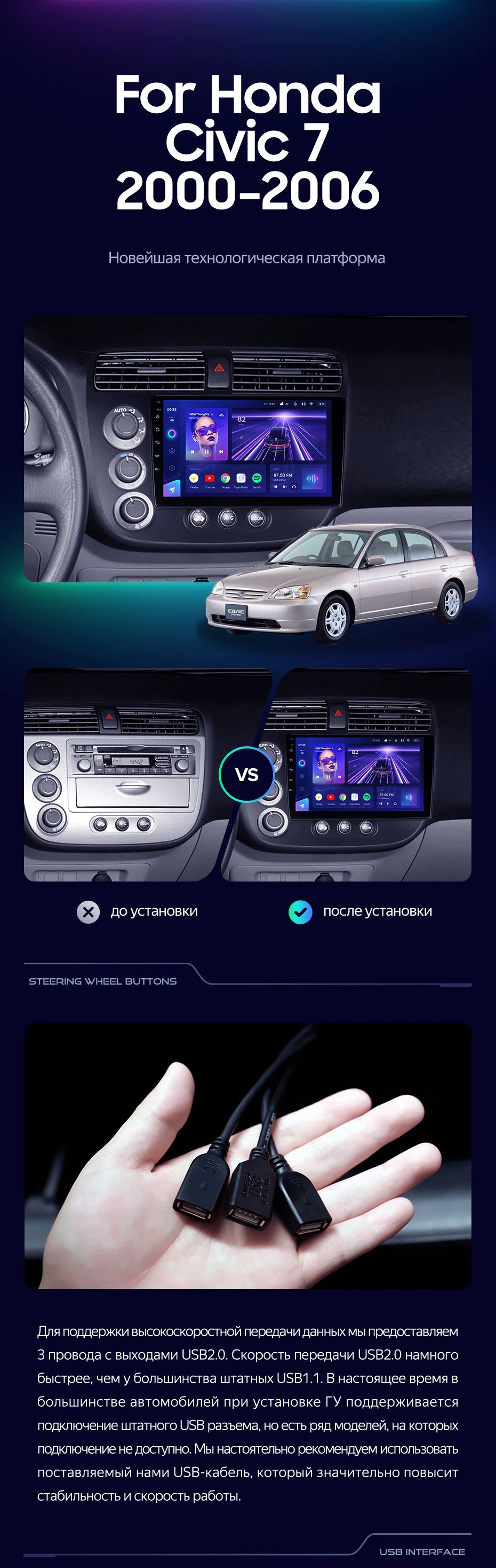 Штатная магнитола Teyes CC3L 4/32 Honda Civic 7 (2000-2006) F1 - купить всего за 28 500 руб. в интернет-магазине в Орске Teyes.com.ru. ✓ Самый лучший выбор мультимедиа ✓ Лучшая замена штатному ГУ ✓ Тел. +7 (800) 775-31-74