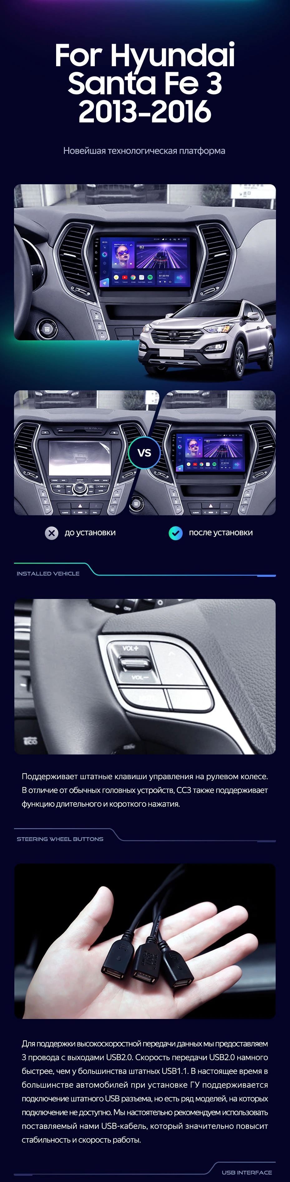 Штатная магнитола Teyes CC3L 4/32 Hyundai Santa Fe 3 (2013-2016) Тип-B - купить всего за 29 500 руб. в интернет-магазине в Орске Teyes.com.ru. ✓ Самый лучший выбор мультимедиа ✓ Лучшая замена штатному ГУ ✓ Тел. +7 (800) 775-31-74