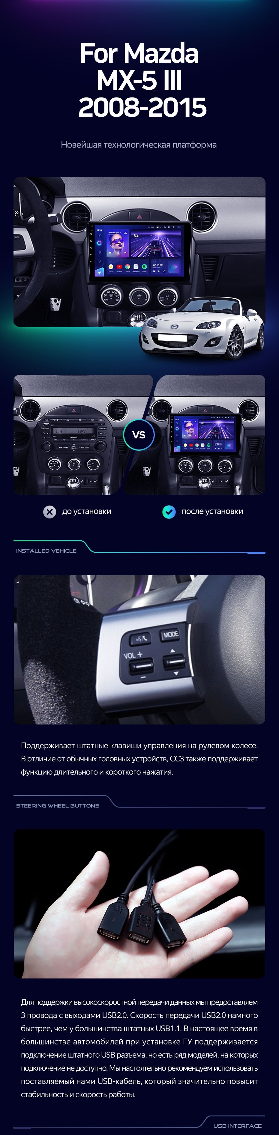 Штатная магнитола Teyes CC3L 4/32 Mazda MX-5 (2008-2015) - купить всего за 30 200 руб. в интернет-магазине в Орске Teyes.com.ru. ✓ Самый лучший выбор мультимедиа ✓ Лучшая замена штатному ГУ ✓ Тел. +7 (800) 775-31-74