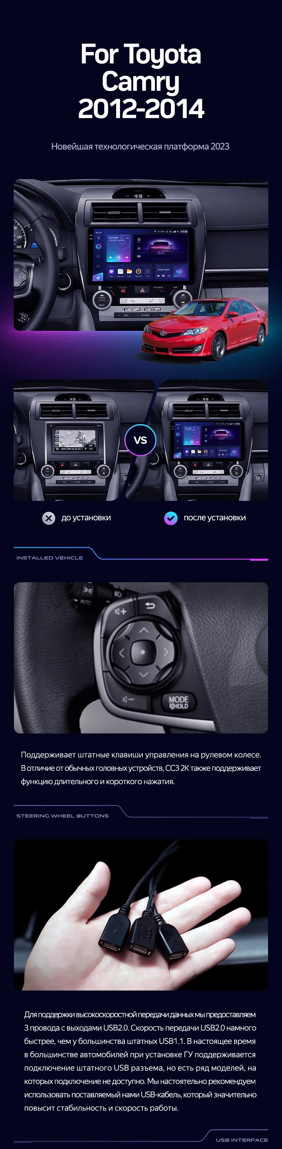 Штатная магнитола Teyes CC3L WiFi 2/32 Toyota Camry 7 XV 50 55 (2012-2014) Америка - купить всего за 17 100 руб. в интернет-магазине в Орске Teyes.com.ru. ✓ Самый лучший выбор мультимедиа ✓ Лучшая замена штатному ГУ ✓ Тел. +7 (800) 775-31-74