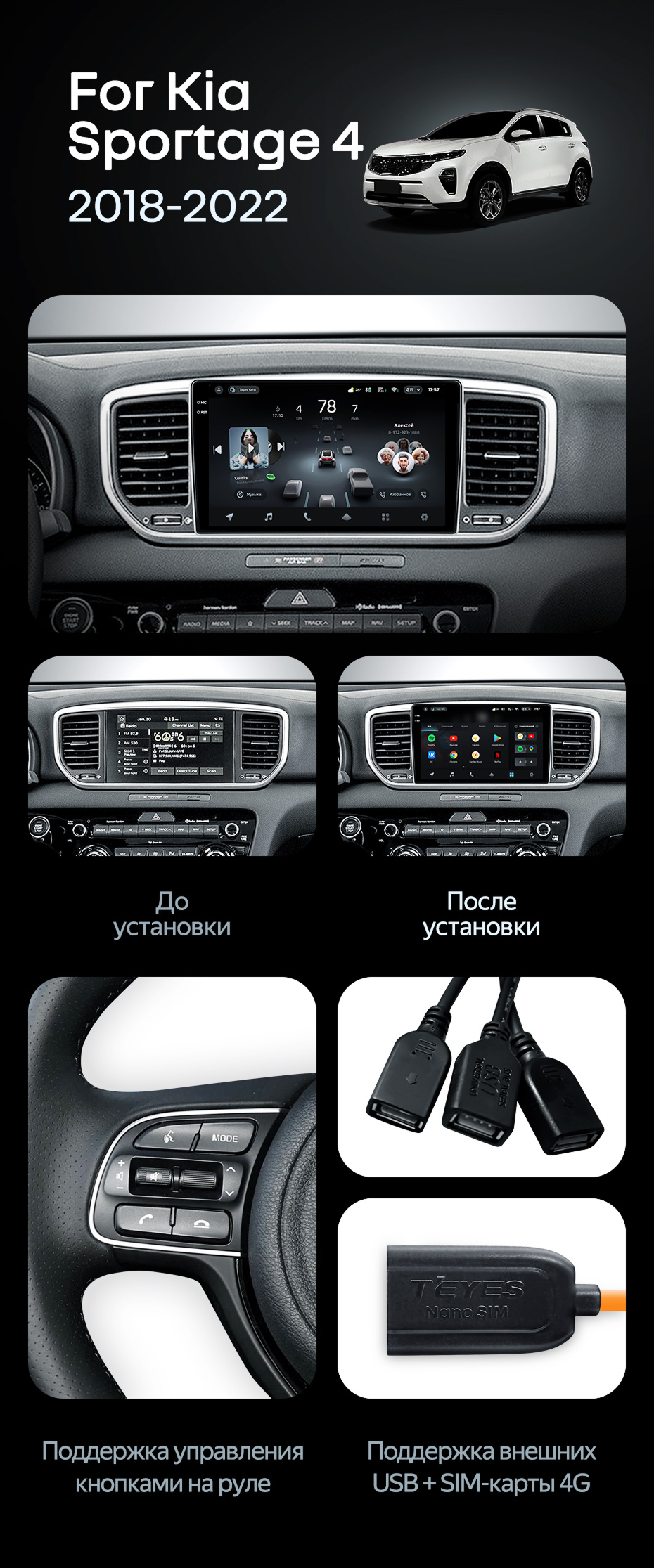 Штатная магнитола Teyes CC4 8/128 Kia Sportage 4 QL (2018-2022) Тип-B - купить всего за 49 590 руб. в интернет-магазине в Орске Teyes.com.ru. ✓ Самый лучший выбор мультимедиа ✓ Лучшая замена штатному ГУ ✓ Тел. +7 (800) 775-31-74