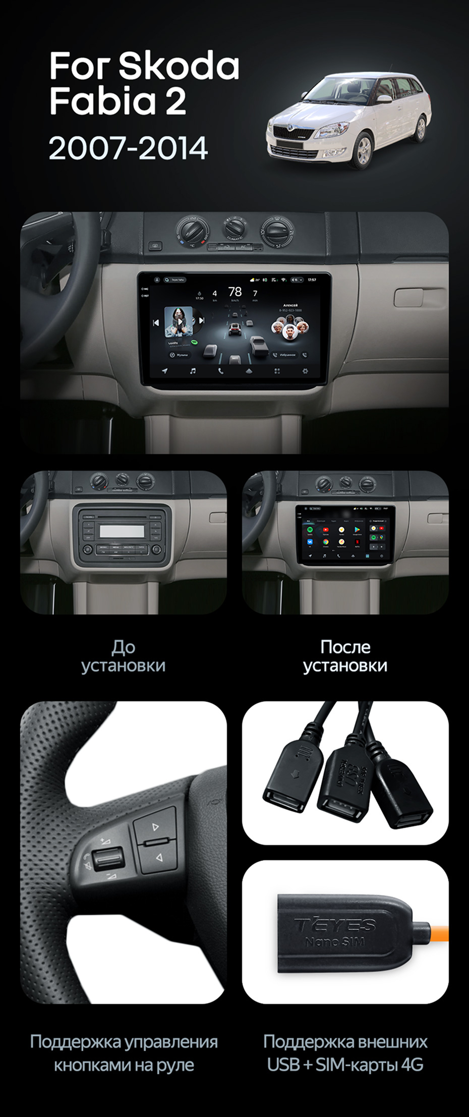 Штатная магнитола Teyes CC4 8/128 Skoda Fabia 2 (2007-2014) - купить всего за 53 000 руб. в интернет-магазине в Орске Teyes.com.ru. ✓ Самый лучший выбор мультимедиа ✓ Лучшая замена штатному ГУ ✓ Тел. +7 (800) 775-31-74