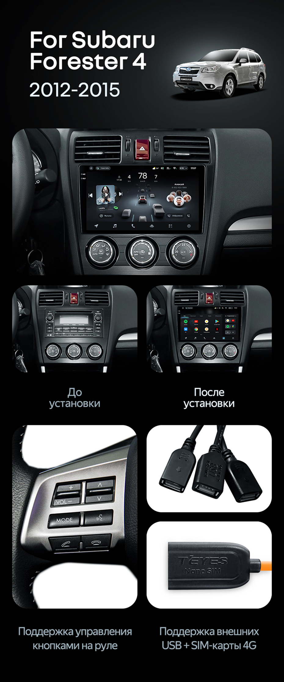 Штатная магнитола Teyes CC4 Pro 12/256 Subaru Forester 4 SJ (2012-2015) Тип-A - купить всего за 68 100 руб. в интернет-магазине в Орске Teyes.com.ru. ✓ Самый лучший выбор мультимедиа ✓ Лучшая замена штатному ГУ ✓ Тел. +7 (800) 775-31-74