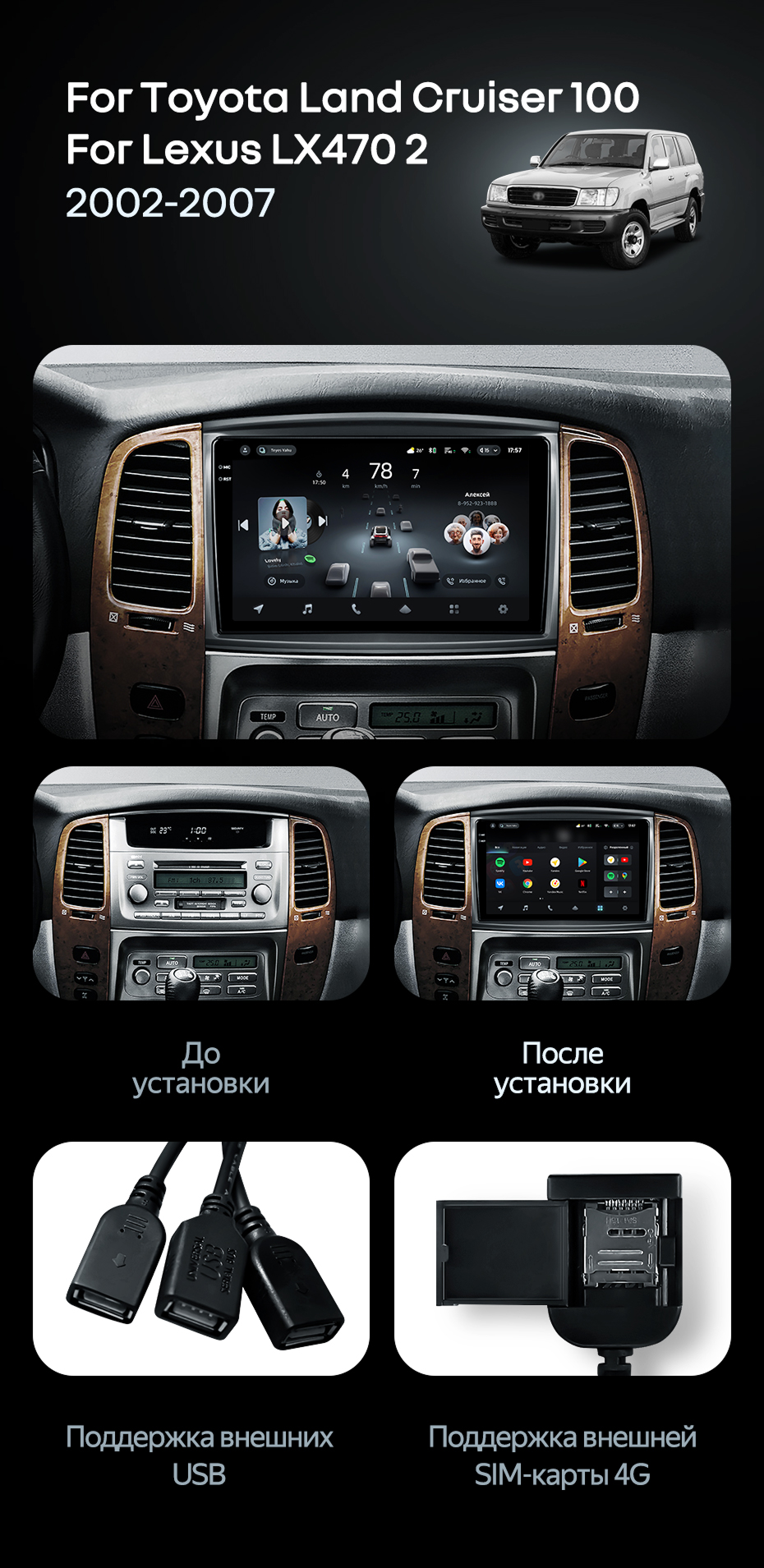 Штатная магнитола Teyes CC4 Pro 8/128 Lexus LX470 J100 2 (2002-2007) Тип-C - купить всего за 61 240 руб. в интернет-магазине в Орске Teyes.com.ru. ✓ Самый лучший выбор мультимедиа ✓ Лучшая замена штатному ГУ ✓ Тел. +7 (800) 775-31-74