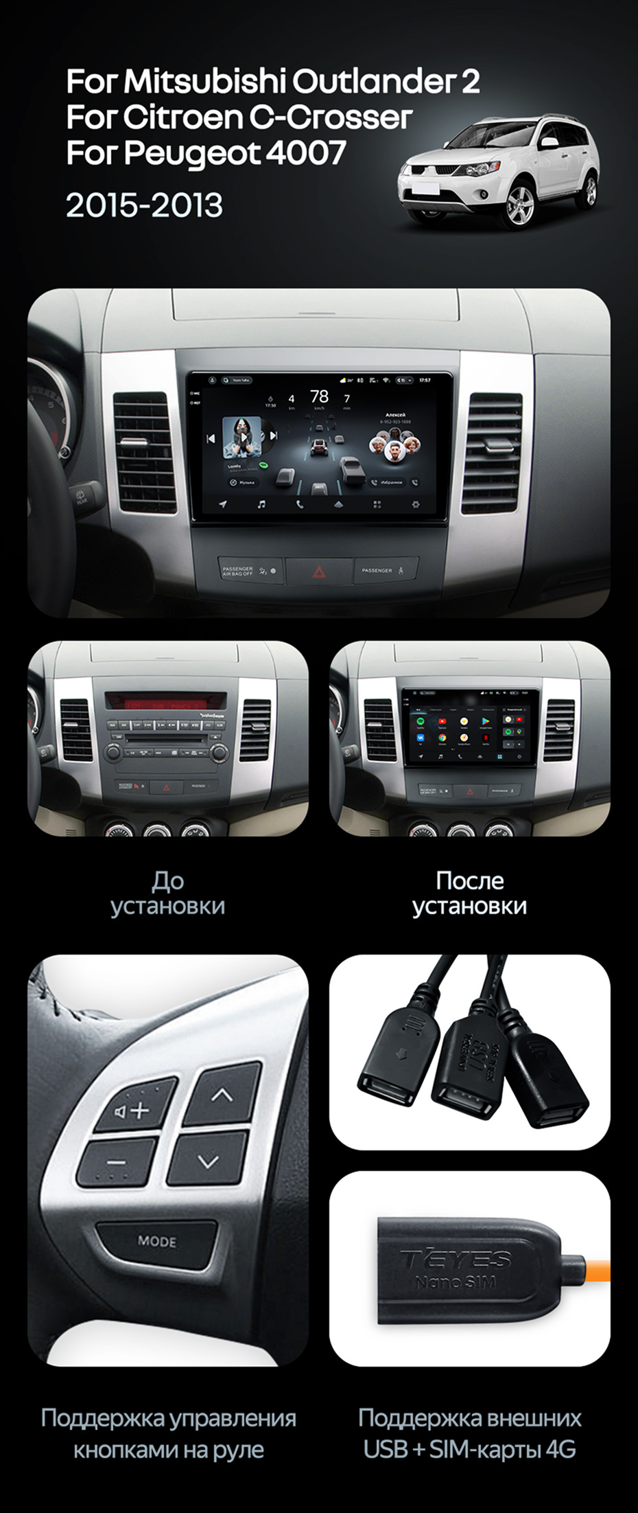 Штатная магнитола Teyes CC4 Pro 8/128 Mitsubishi Outlander 2 (2005-2011) Тип-A - купить всего за 58 040 руб. в интернет-магазине в Орске Teyes.com.ru. ✓ Самый лучший выбор мультимедиа ✓ Лучшая замена штатному ГУ ✓ Тел. +7 (800) 775-31-74