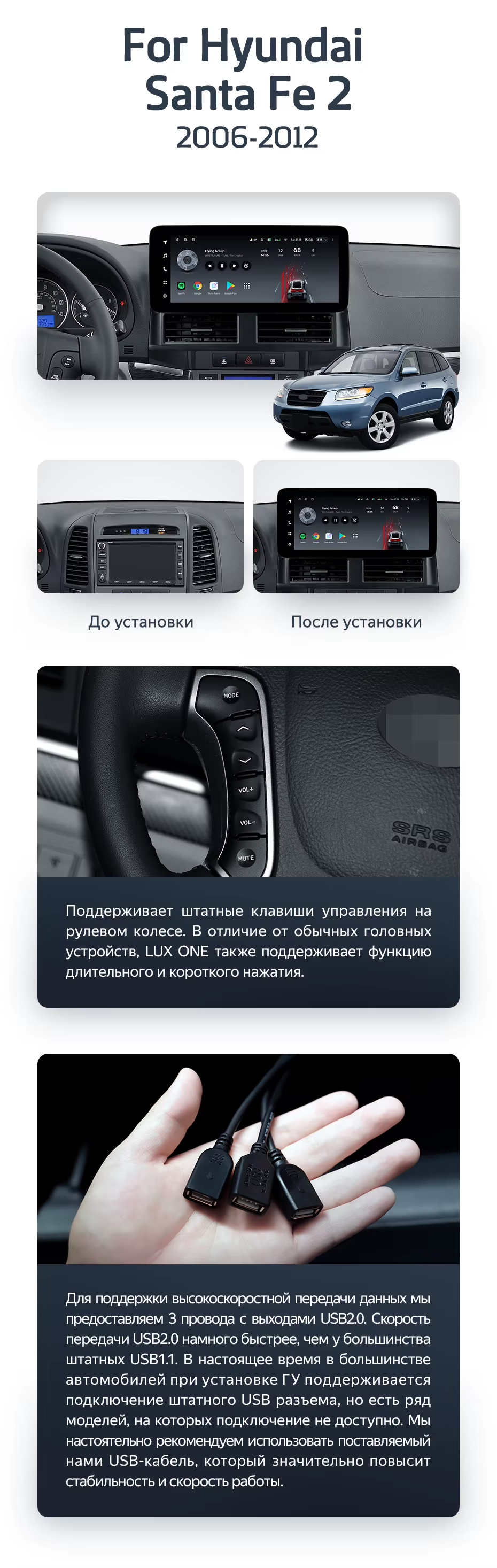 Штатная магнитола Teyes LUX ONE 4/64 Hyundai Santa Fe 2 (2006-2012) - купить всего за 45 300 руб. в интернет-магазине в Орске Teyes.com.ru. ✓ Самый лучший выбор мультимедиа ✓ Лучшая замена штатному ГУ ✓ Тел. +7 (800) 775-31-74