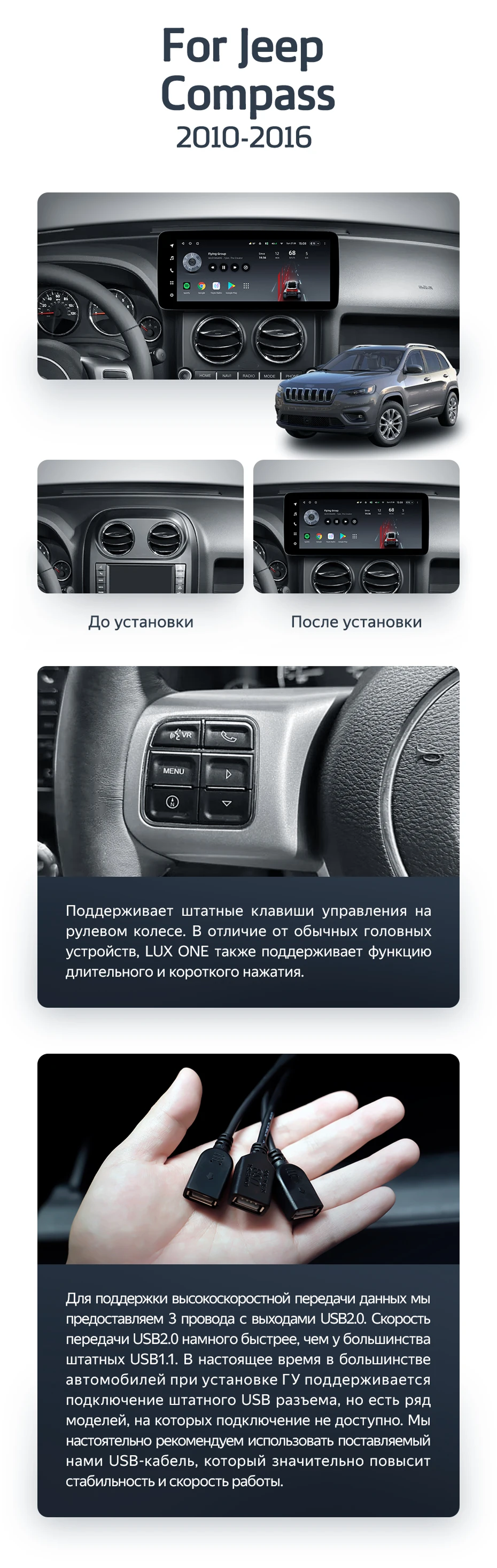 Штатная магнитола Teyes LUX ONE 6/128 Jeep Compass MK (2010-2016) - купить всего за 51 200 руб. в интернет-магазине в Орске Teyes.com.ru. ✓ Самый лучший выбор мультимедиа ✓ Лучшая замена штатному ГУ ✓ Тел. +7 (800) 775-31-74