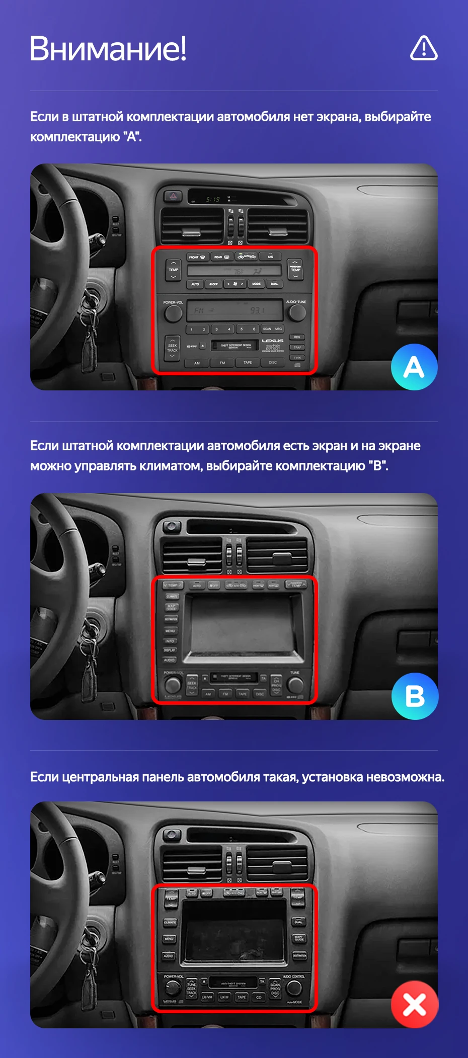 Готовый установочный комплект для магнитолы Lexus GS300 2 S160 (1997-2004) Тип-B 9 дюймов в штатное место, включает переходную рамку и проводку.