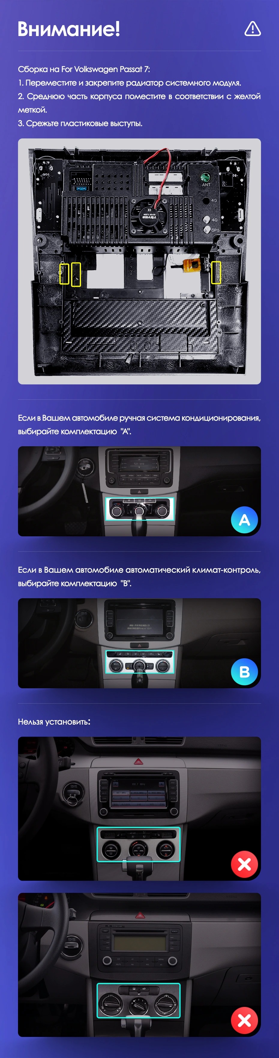 Установочный комплект для Volkswagen Passat 7 B7 NMS (2011-2015) включает переходную рамку и проводку.